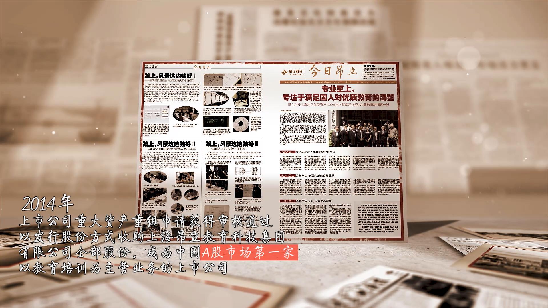 上市公司重大资产重组申请获得审核通过,以发行股份方式收购上海昂立教育科技集团有限公司全部股份, 成为中国A股市场第一家以教育培训为主营业务的上市公司。